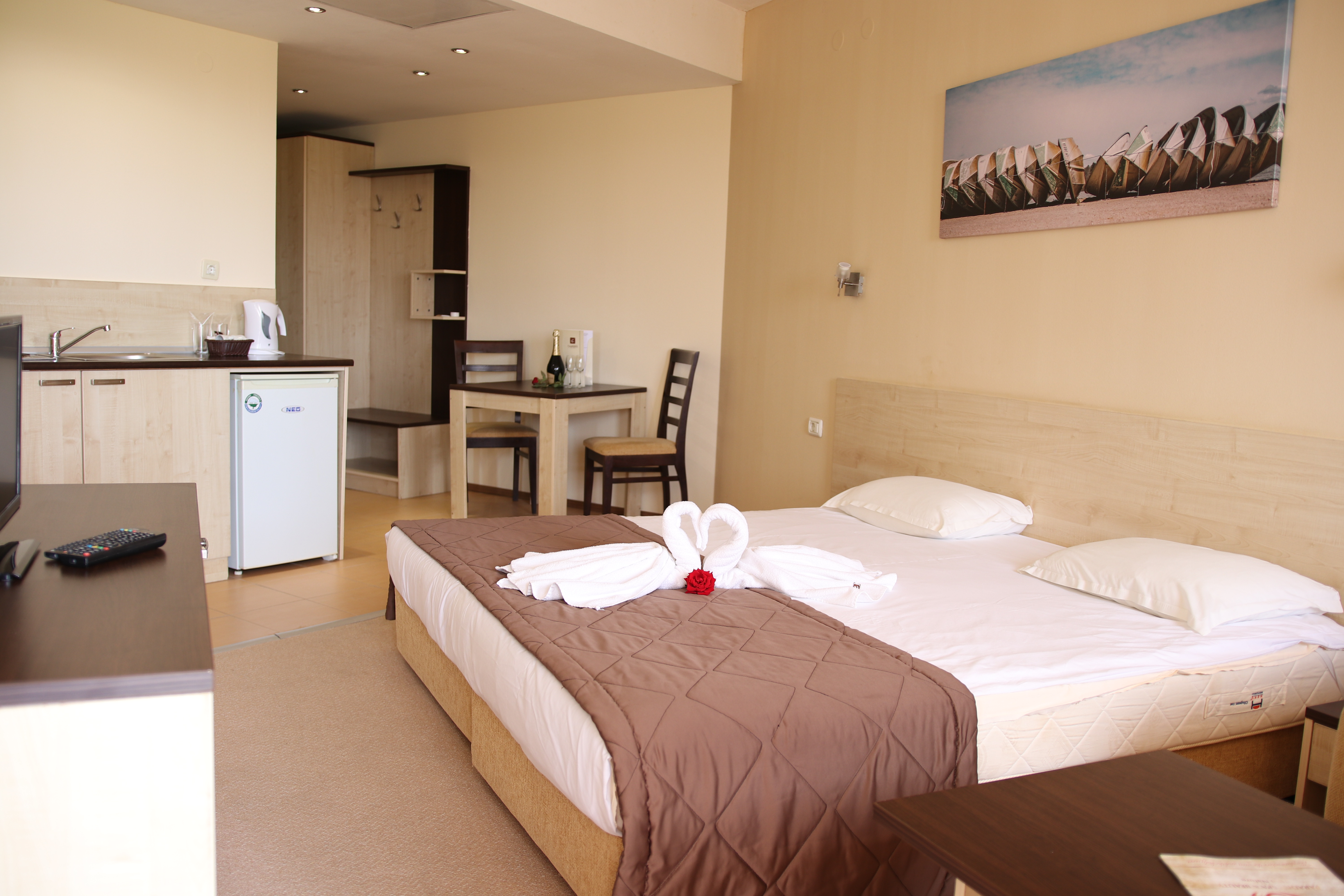 предлага 90 едностайни апартамента, 61 студия и 13 апартамента „Лукс”, което го превръща в удобен комплекс за семейни ваканции или фирмeни събития.